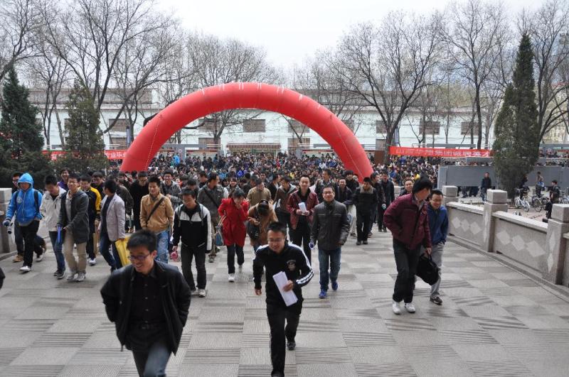 上午九点,招聘会现场外早已人山人海,挤满了前来求职的校内外毕业生。尽管人数众多,但在我校招生与就业工作处及各学院、各相关部门的认真组织协调下,招聘会现场依旧秩序井然。