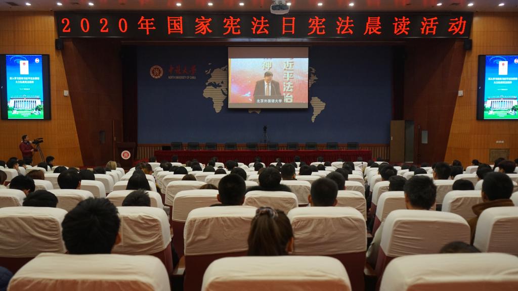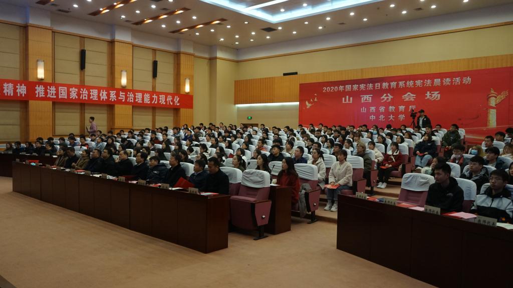 在第三个宪法宣传周、第七个“国家宪法日”之际,12月4日,2020年全国教育系统宪法宣传周“宪法晨读”活动山西分会场活动在我校举行。今年的活动主题是“深入学习宣传习近平法治思想,大力弘扬宪法精神”。我校200余名师生现场观看了直播,1500余名师生在行知广场同步参加了升国旗、唱国歌、“宪法晨读”活动。